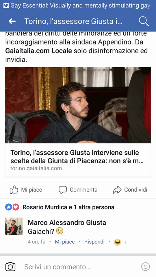 Di seguito postiamo gli screenshot di un difensore d’ufficio dell’Assessore Giusta e l’originalissima risposta al commento, mututato peraltro da un avversario politico odiato dalla parte che governa Torino, dell’assessore Giusta. Entrambi i commenti sono per noi medaglie al valore e, come noterete, entrano nel merito come da noi richiesto. Ci sono stati inviati da un nostro gentile lettore.