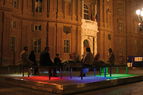“Illuminate Benches” di Jeppe HEIN è la “Luce d’artista” allestita nell’area verde compresa tra le vie Vibò, Stradella e Conte di Roccavione (Circoscrizione 5). L’installazione – composta da panche che si illuminano sedendosi sopra – è tutt’ora funzionante e non presenta segni di danneggiamento. I guasti sono riservati alla cerimonie d’apertura con comunicati stampa trionfanti, tipo quelli della ventesima edizione di “Luci d’Artista”.