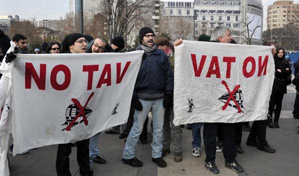 “Al termine della riunione della Commissione Opere Pubbliche e Ambiente, dedicata alla linea 5 della Ferrovia metropolitana, alcuni militanti del Movimento No Tav hanno lanciato finte banconote dalla balconata del Municipio di Rivalta indirizzate, in particolare, al capogruppo PD Claudio Sussolano e al Commissario del Governo per la Tav Paolo Foietta.