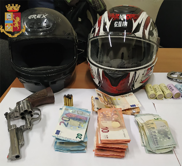 Poco prima delle 20 di mercoledì 11 dicembre, i tre entra in un supermercato, visi coperti dei caschi integrali da motociclista, lasciando l’autista e l’auto appena poco lontano dal plesso commerciale individuato per commettere la rapina: un supermercato di Strada Altessano. Perpetrato il reato, però, i rapinatori vengono bloccati, poco dopo, dagli agenti della Squadra Mobile subito intervenuti. Le successive perquisizioni portano al rinvenimento di un revolver cromato Smith & Wesson calibro 357 Magnum con cui gli stessi avevano poco prima perpetrato la rapina, completo di 5 proiettili e pronto a far fuoco. Da accertamenti, è poi emerso che l’arma era stata rubata nel corso di un furto in abitazione in provincia di Torino, nei pressi di Ivrea. I poliziotti recuperano anche la refurtiva della rapina: più di mille euro circa in contanti.