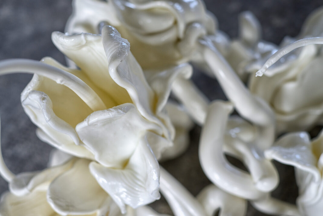 Leggi l'articolo →L’opera La natura che non c’era si configura come un’installazione site-specific composta da più di 400 elementi floreali bianchi realizzati in plastica rigenerata che si estende nella grande sala inondata di luce – lunga 50 metri e larga 20 – in cui svetta un elemento centrale di due metri e mezzo d’altezza e un metro e mezzo di diametro. Ogni fiore che compone l’installazione è un pezzo unico, dotato di proprie potenzialità estetiche e significanti. La materia non entra negli stampi ma viene modellata a mano, trasformando un materiale ‘ripetitivo’ per antonomasia, come la plastica, in elemento plasmabile, sempre differente, mai uguale.