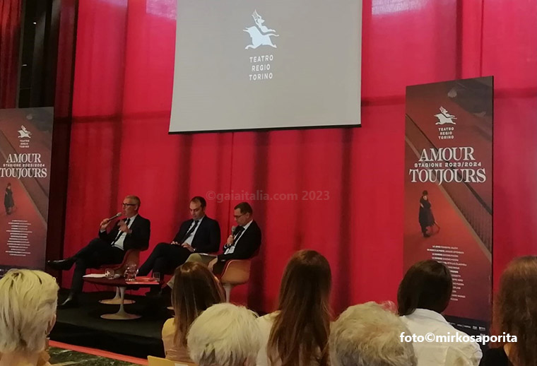 Con il titolo Amour Toujours è stata presentata oggi la nuova stagione del Teatro Regio Torino. Nell’anno del cinquantesimo anniversario dell’inaugurazione dell’odierna sede è stato introdotto anche il nuovo logo del teatro, che mantiene il tradizionale toro abbinato alla figura della mitologica Tersicore, musa greca della musica e della danza.