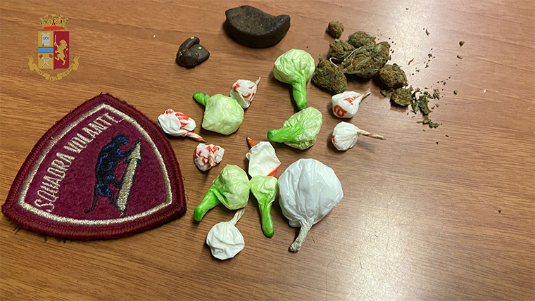 Intorno alle 2,30 di notte veniva un ventiseienne albanese per detenzione di sostanza stupefacente ai fini di spaccio, nonché per resistenza a pubblico ufficiale e lesioni personali. Il 26enne, nel tentativo di sottrarsi all’arresto, colpiva con calci e morsi alle mani e alle braccia gli agenti intervenuti, e solo l’ausilio prestato da altre pattuglie di Volante consente di mettere in sicurezza l’uomo che viene così ammanettato. Dai primi accertamenti gli agenti appuravano che l’uomo aveva tentato di disfarsi di 13 involucri di cocaina e due frammenti di hashish; addosso all’uomo vengono trovati anche 190 euro oltre alla chiave di un auto, individuata successivamente in corso Cairoli, a bordo della quale nel cassettino posto sotto al volante, lato sinistro, veniva rinvenuta una busta in cellophane contenente della marijuana.