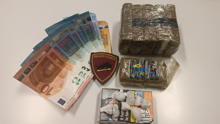 Gli operatori, insospettiti dall’agitazione manifestata al controllo dal trentenne, lo sottopongono a perquisizione rinvenendo nelle sue tasche un coltellino con la lama sporca di hashish, due frammenti della medesima sostanza, uno spray al peperoncino e circa 85€ in contanti. Inoltre, il trentenne è anche in possesso di un telefono cellulare risultato successivamente di provenienza furtiva, e di un mazzo di chiavi. Avendo fondato motivo di ritenere che l’uomo possa nascondere nella propria abitazione ulteriore stupefacente, i poliziotti si recano presso il suo domicilio: qui viene identificato un suo connazionale, ovvero il ventottenne, e vengono ritrovati, nascosti all’interno di una scatola per scarpe, 5 panetti di hashish interi e uno spezzato a metà, per un peso complessivo di circa 580 grammi, nonché 8 involucri termosaldati di crack nascosti in un pacchetto di sigarette e la somma di denaro pari a 210€.