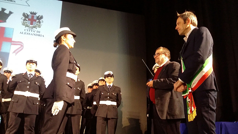 Particolarmente intenso, tra i diversi momenti della cerimonia (a cui sono stati invitati i familiari e i conoscenti dei corsisti) dopo l’intervento del Comandante della Polizia Locale di Alessandria, Alberto Bassani, (quale Direttore del corso di formazione), di Giorgio Abonante – Sindaco di Alessandria, Città ospitante il corso – e dell’Assessore Regionale Enrico Bussalino, è stato l’atto di consegna delle placche di servizio che ha visto chiamati sul palco, oltre al Direttore del Corso, anche i Rappresentanti istituzionali degli Enti territoriali di appartenenza delle Allieve e degli Allievi, accompagnati dai rispettivi Comandanti delle Polizie Locali coinvolte.